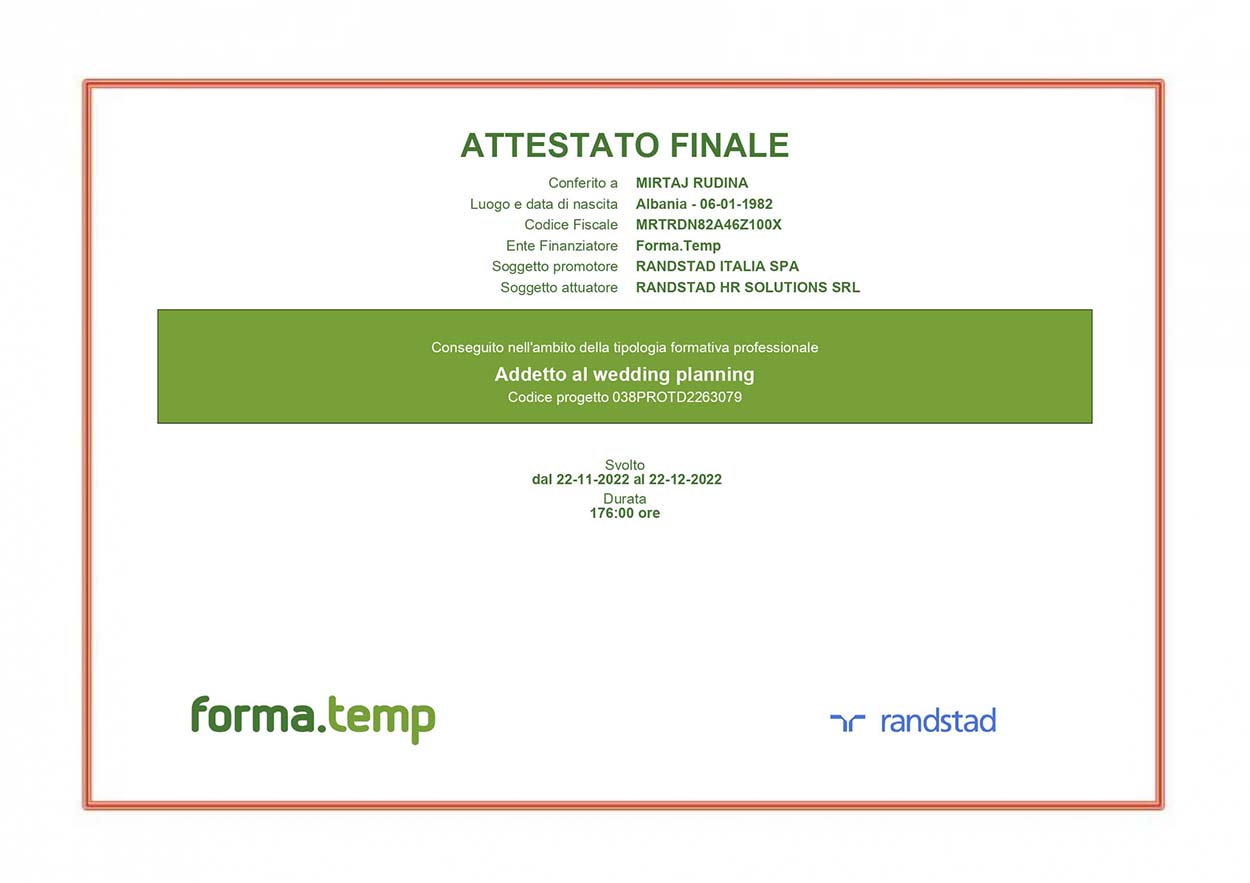 Our mission is to realize and design weddings and events in accordance with the objectives and wishes of the client in an elegant style by offering new, original ideas thanks to our innate creative and artistic abilities, to realize a unique event by curating every detail and making able to turn dreams into reality.